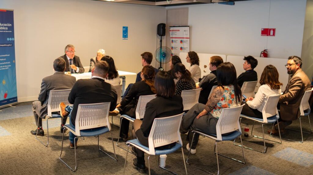 El encuentro contó con la presencia de Axel Cabrera, jefe ORI del Mineduc; Eliana Chamizo, también de la ORI; Angelica Fuenzalida, subdirectora de Desarrollo Estratégico de la DEP; el agregado de cooperación para el francés, Matthieu Thevenon y el equipo lingüístico del Instituto Francés de Chile.
